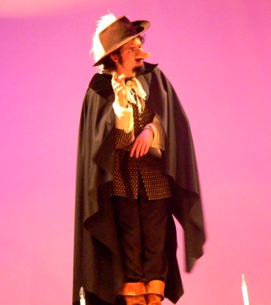 "His wit is as sharp as his sword, his talent and passion as large as his nose. The uniquely endowed protagonist of Cyrano de Bergerac is given a fresh face in this poignant and playful verse adaptation by award-winning playwright Barry Kornhauser. Vicki Chaney directs this portrait of that enduring hero of imperfection and his classic love triangle with the exquisite Roxanne and the handsome but verbally challenged Christian. The witty comedy, swashbuckling sword fighting and heart breaking love of Cyrano combine for a great evening of theatre. Performed December 2007."